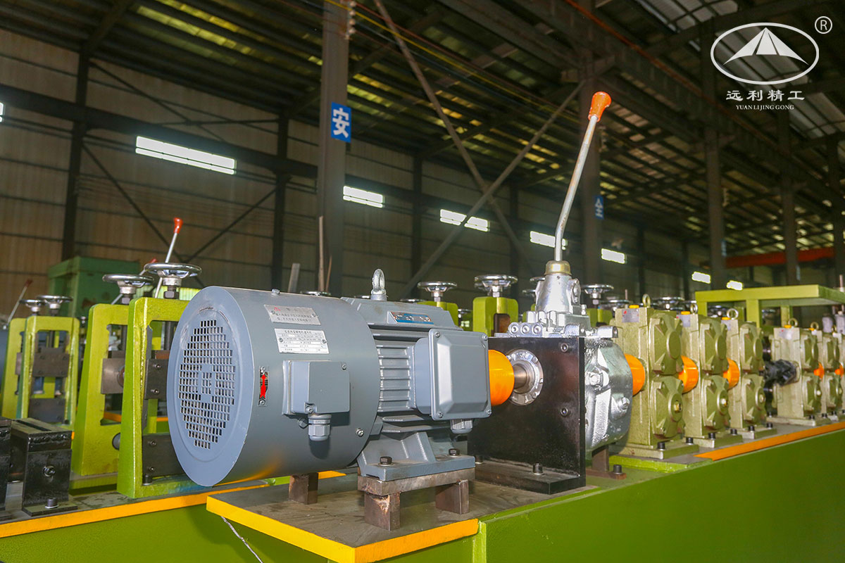 Features of the pipe line: two motors are automatically matched in speed, and gear box are adopted to enhance the torque force of transmission; vertical supports are taper roller bearing and needle bearing; 1*2 positioning sleeve can realize fast mold change and improve the precision of tube making。